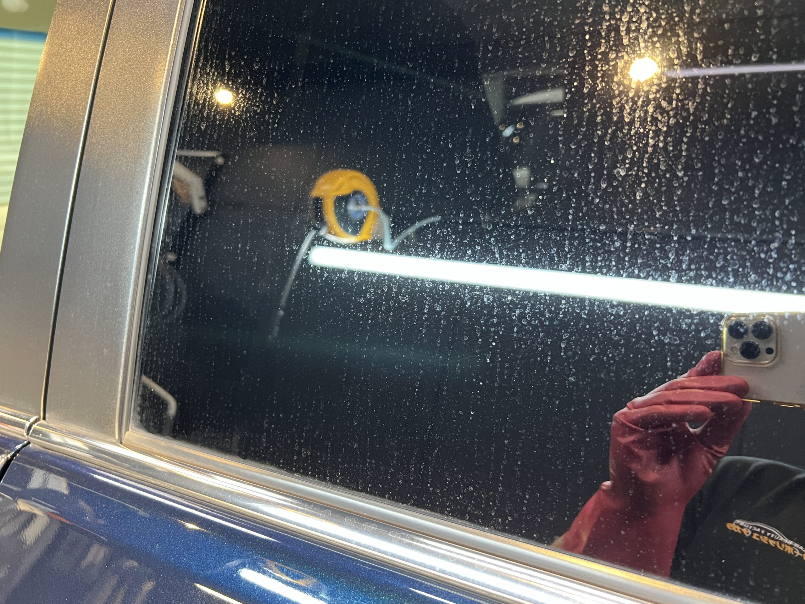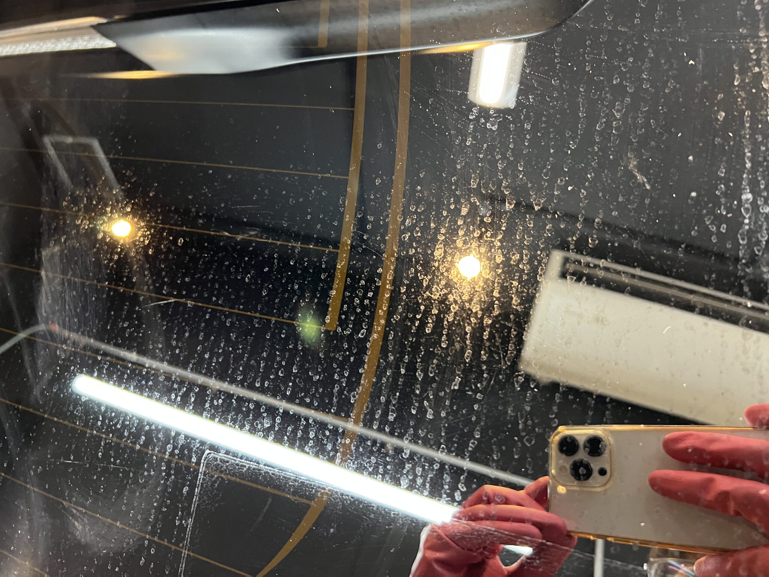 研磨後は窓ガラス専用の撥水コーティングを全面に施工し、窓関連の作業終了です!