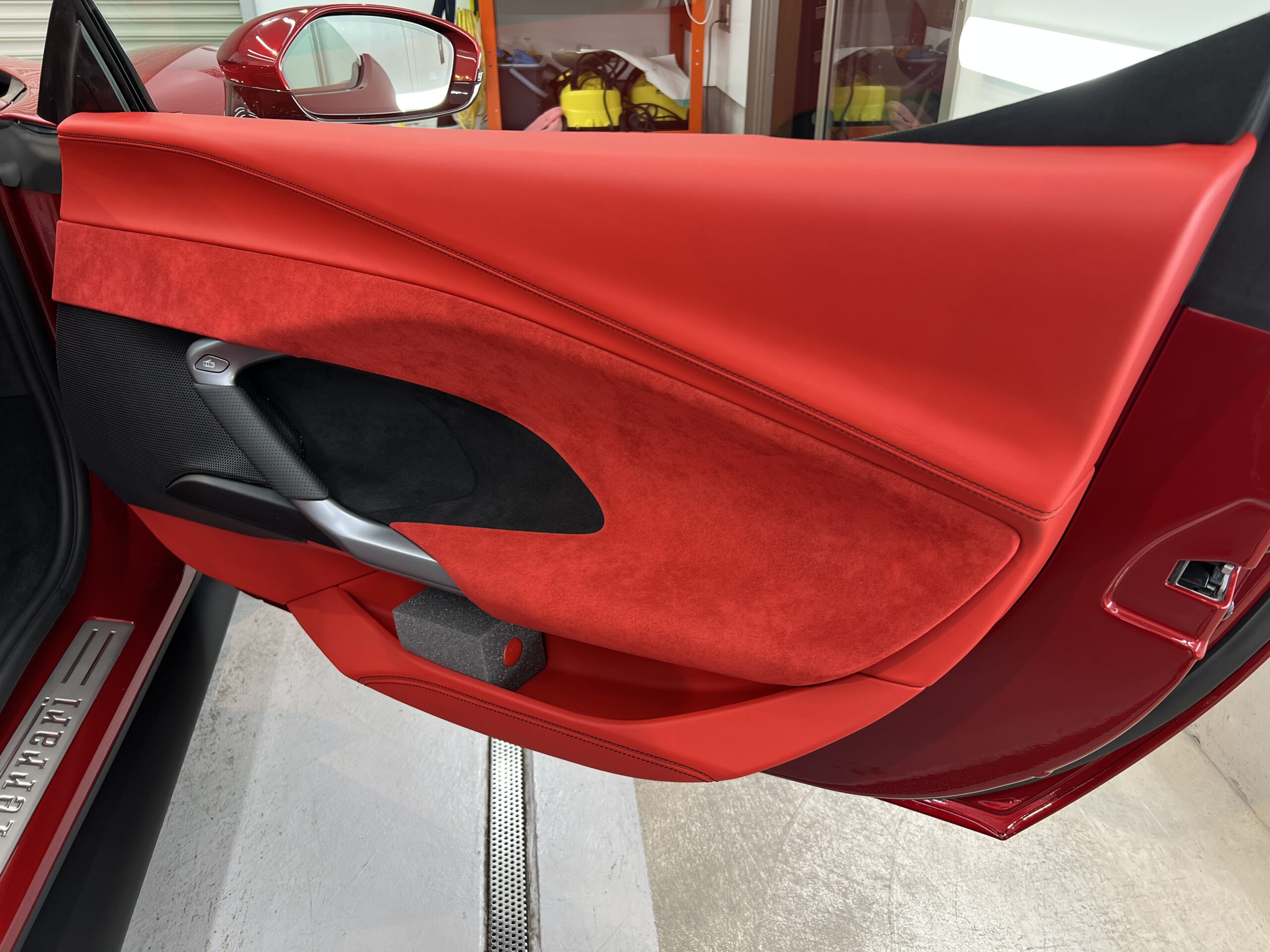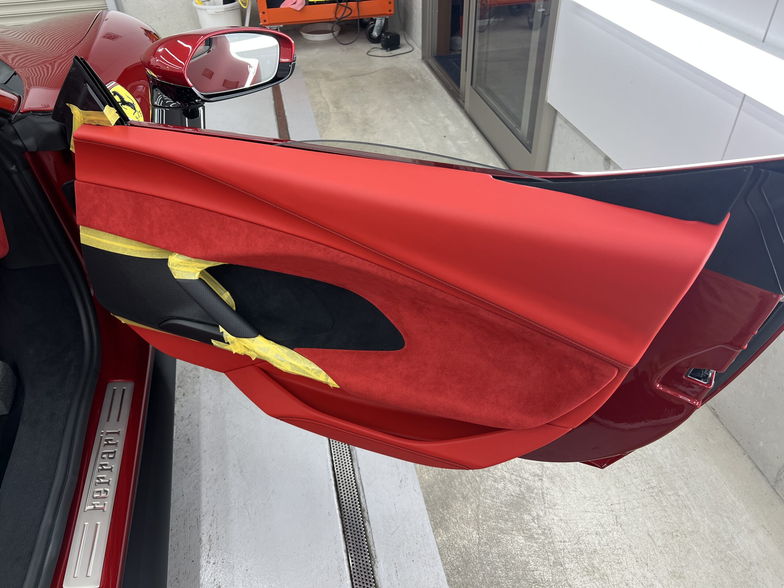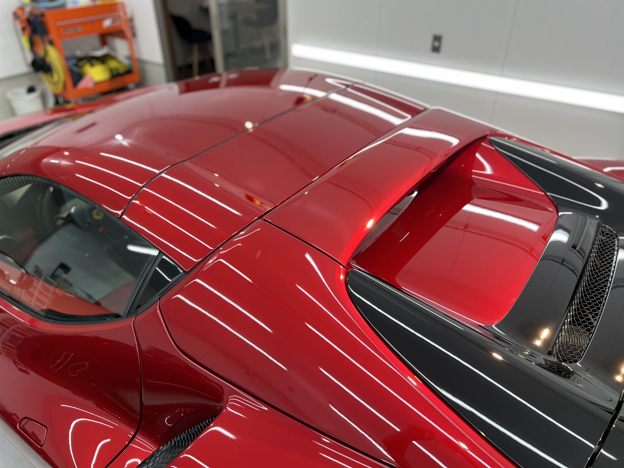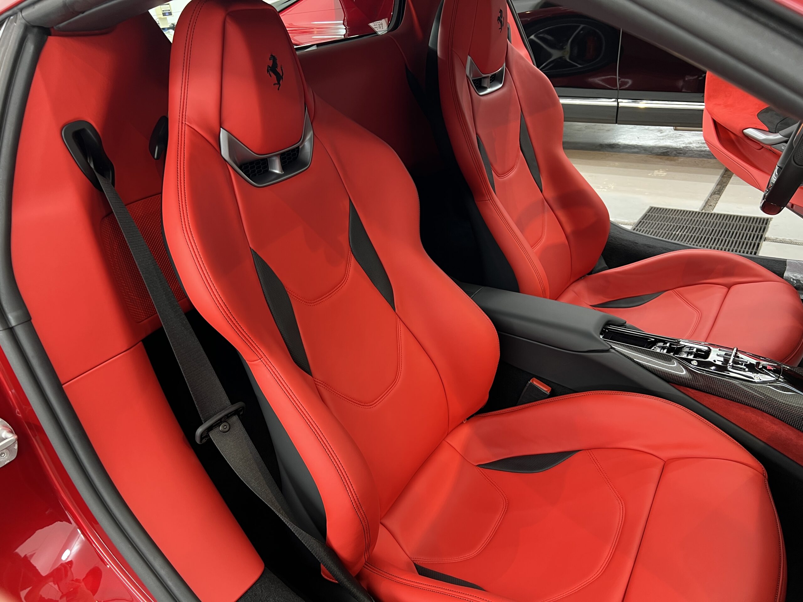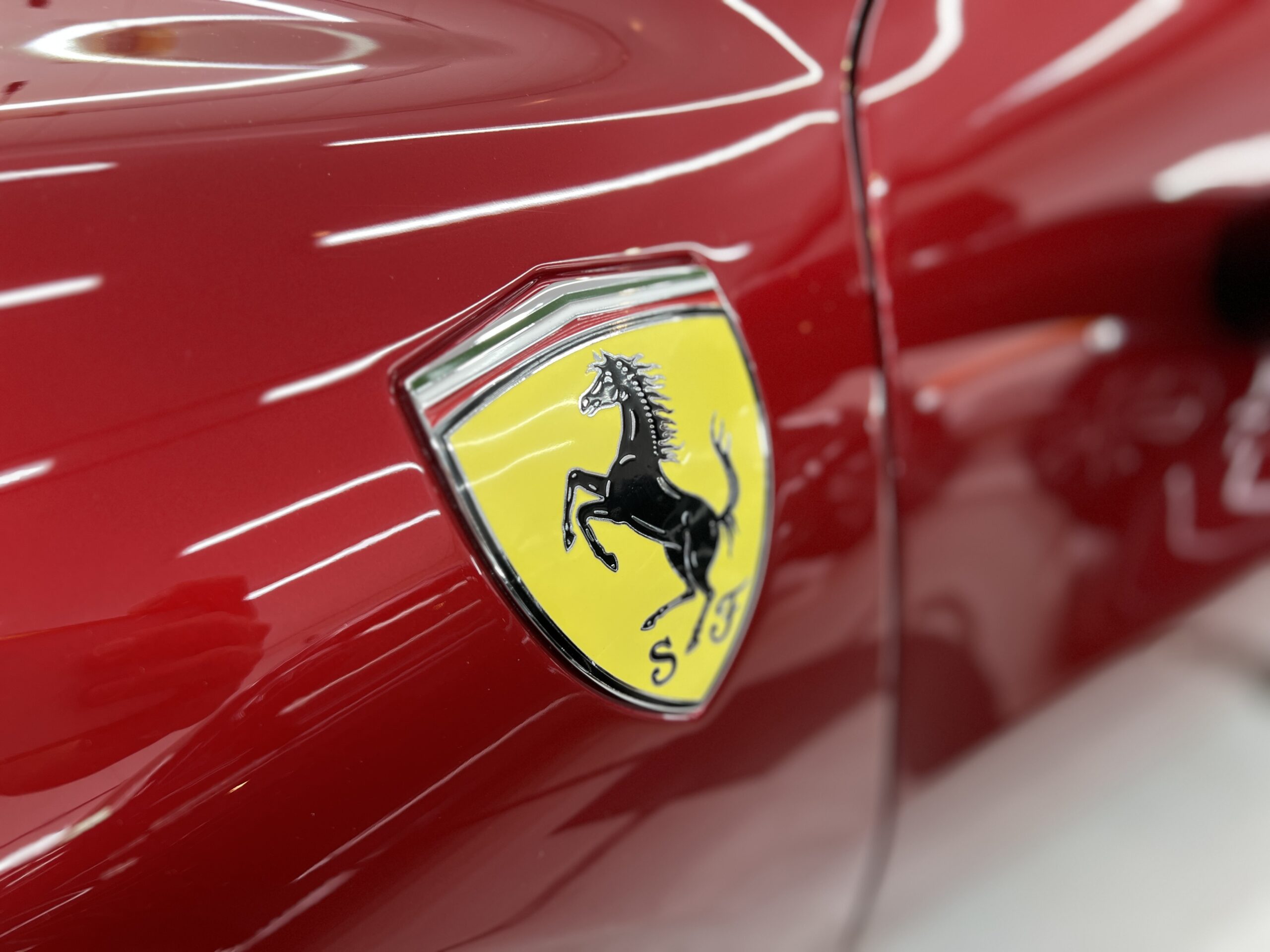 お預かりした296GTSはロッソイモラというボディーカラーで、通常のロッソコルサと比べ赤みを落とし、パールが入ることで深みのある綺麗なカラーです🔴