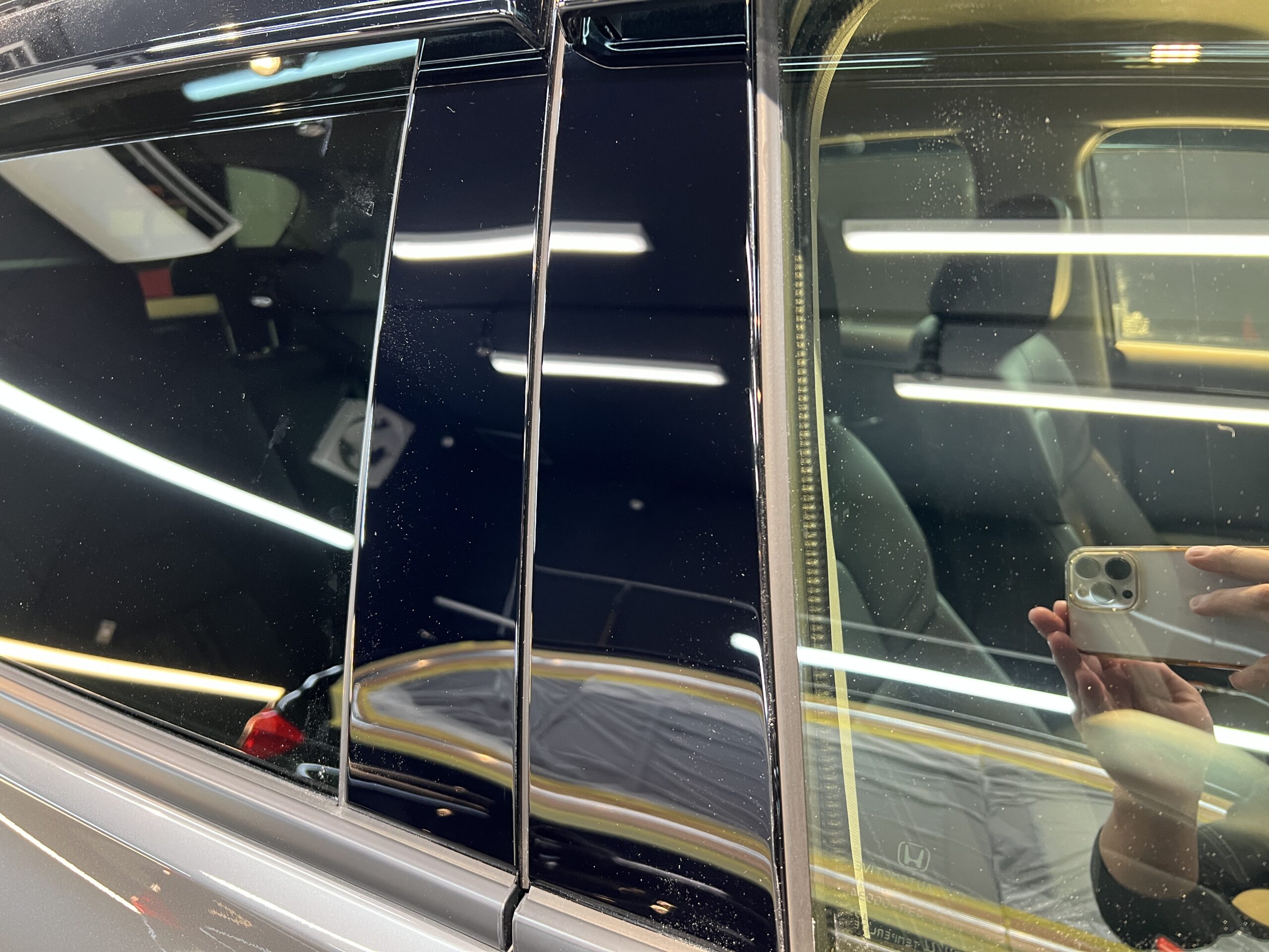 研磨後は窓ガラス専用の撥水コーティングを全面に施工し、窓関連の作業終了です!