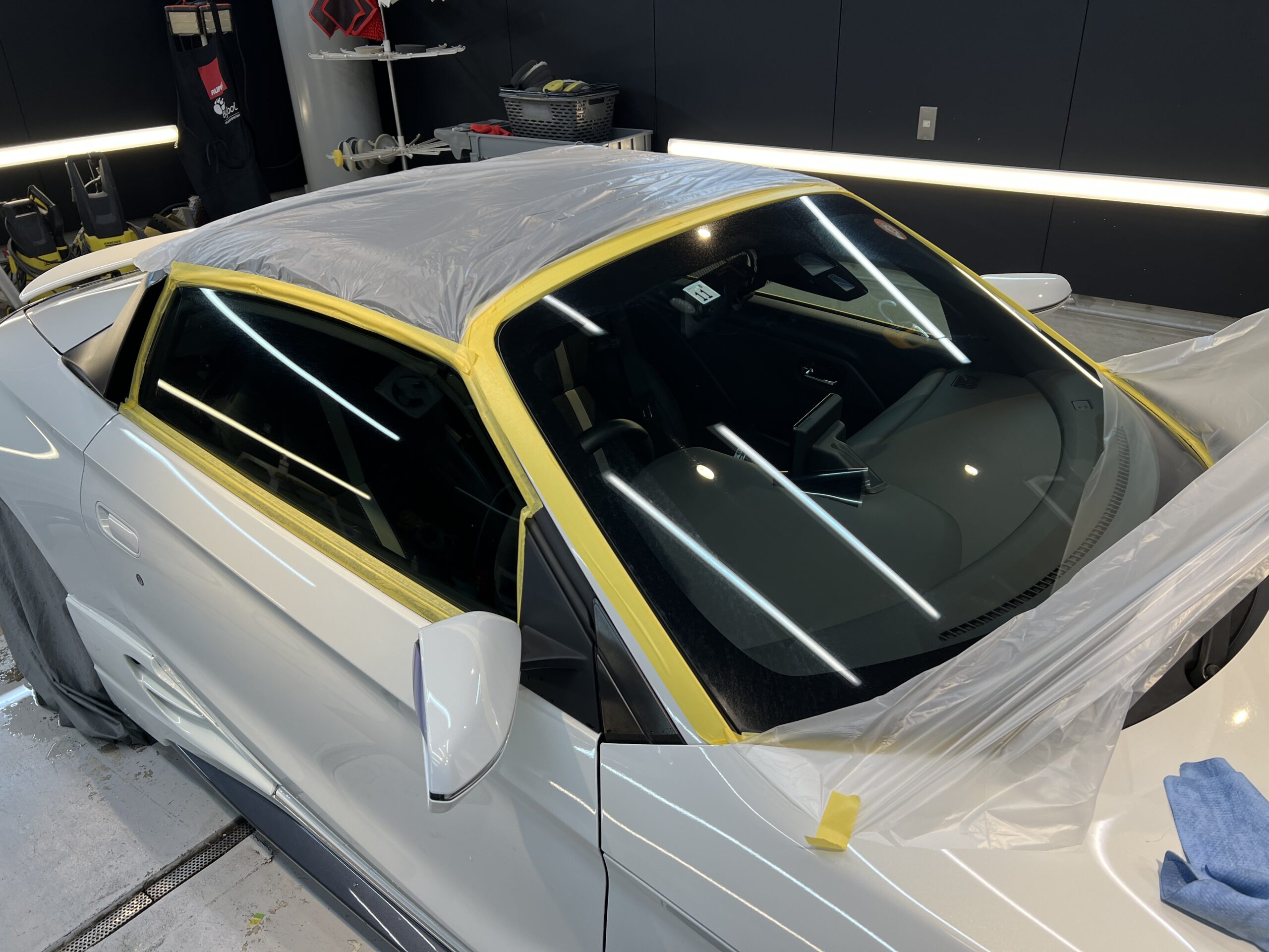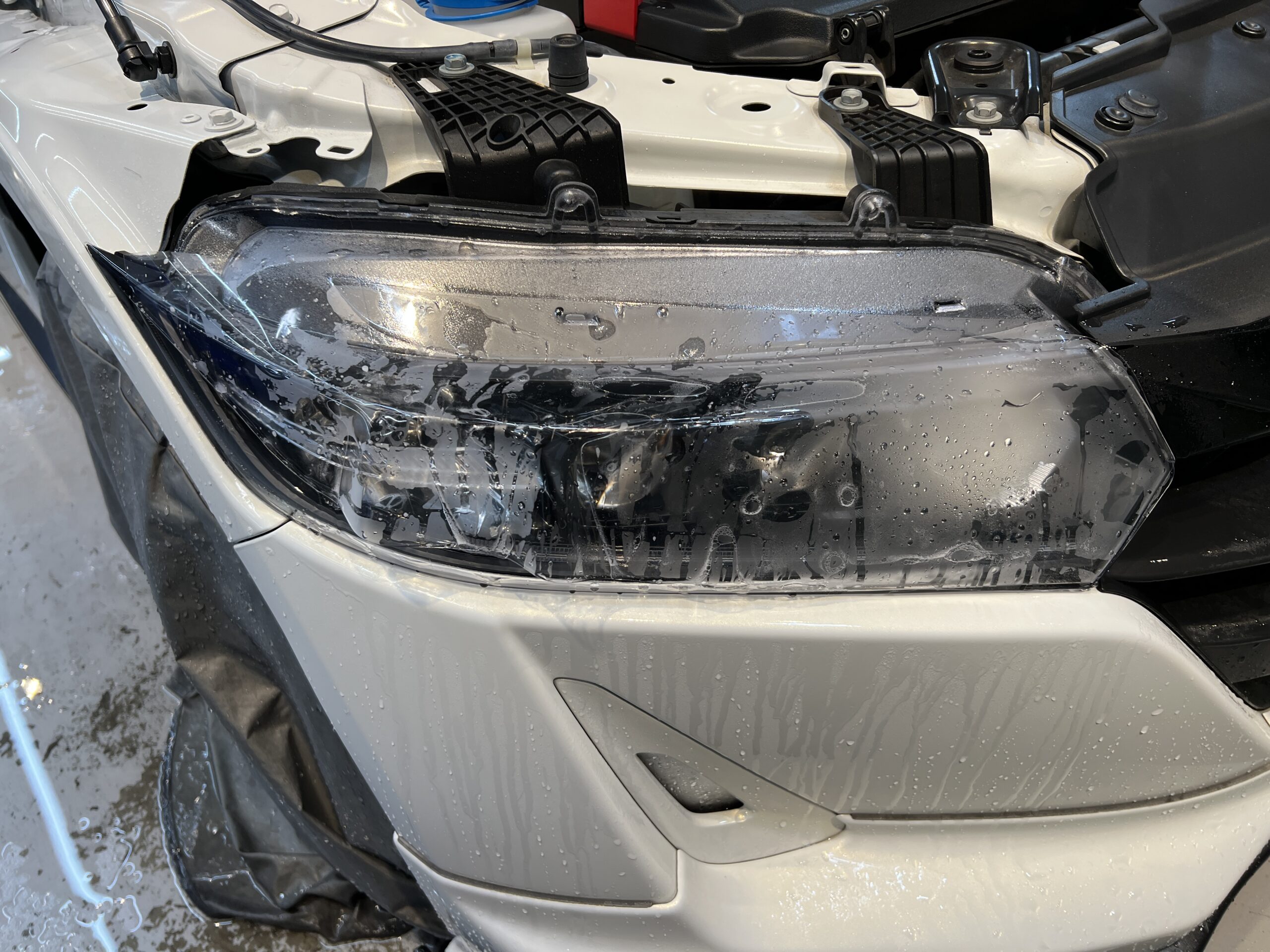 先程綺麗にしたヘッドライトとドアカップに透明プロテクションフィルムを施工していきます!✨