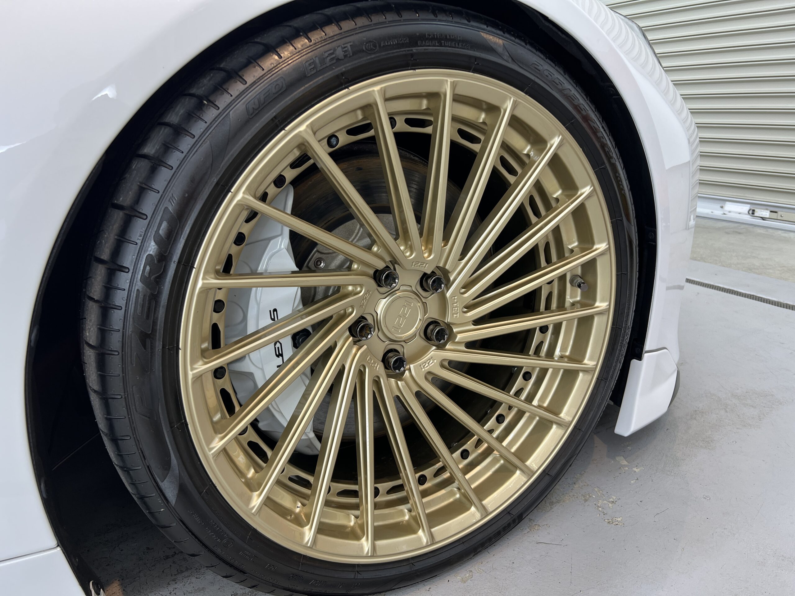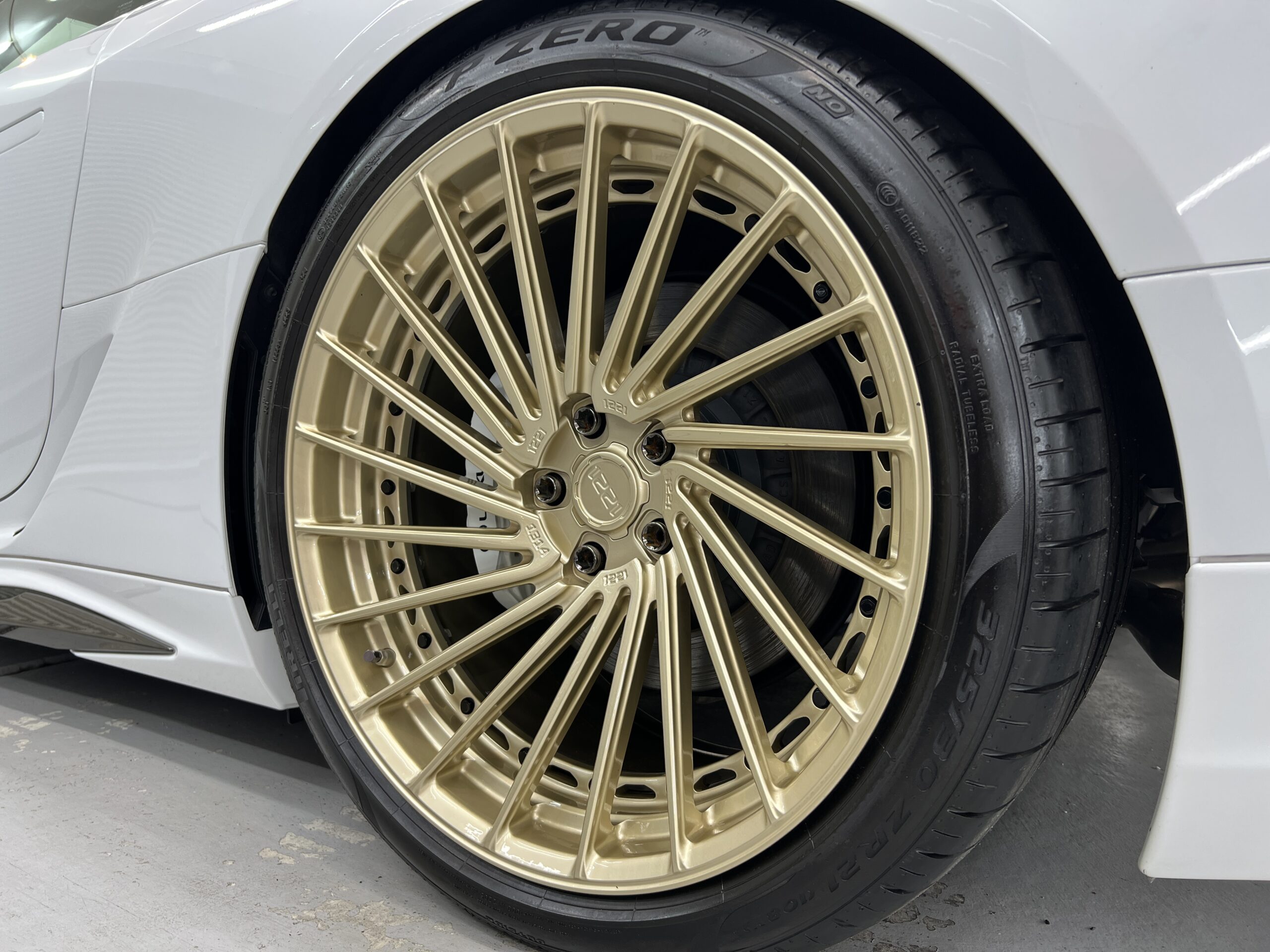 洗浄後、1本数十万はすると思われる高級アメ鍛ホイールにホイール専用撥水コーティングを施工致しました✨